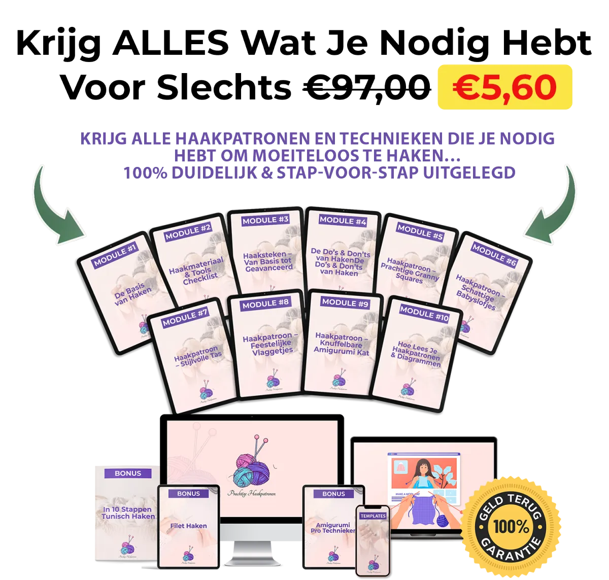 En voor een beperkte tijd kan je ALLES wat je op deze pagina ziet krijgen voor de enorm lage prijs van slechts €97,00 €5,60.